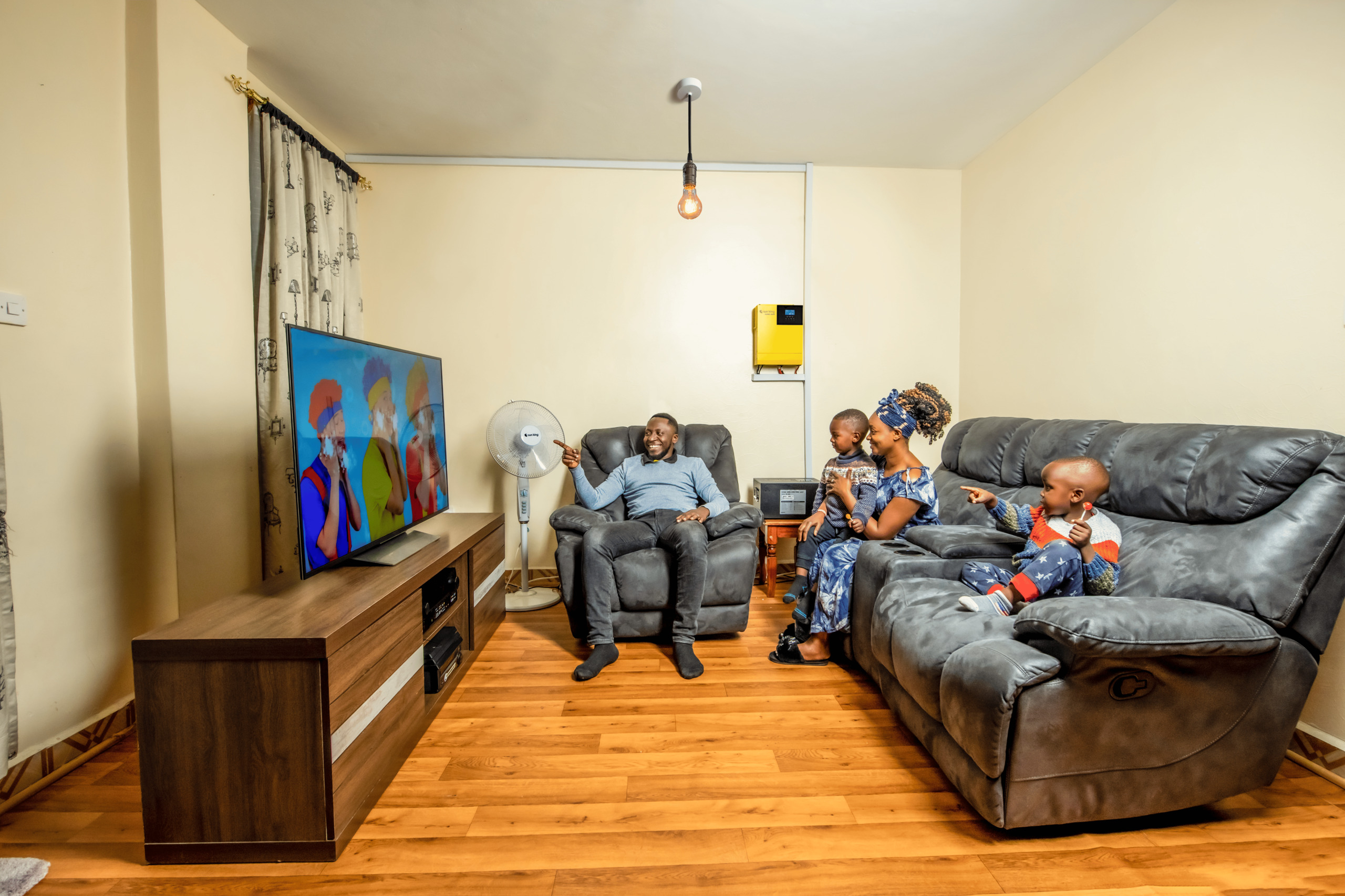 Light your home, charge your phones, and power compatible TVs, radios, and fans with Sun King’s ultra-affordable solar home systems